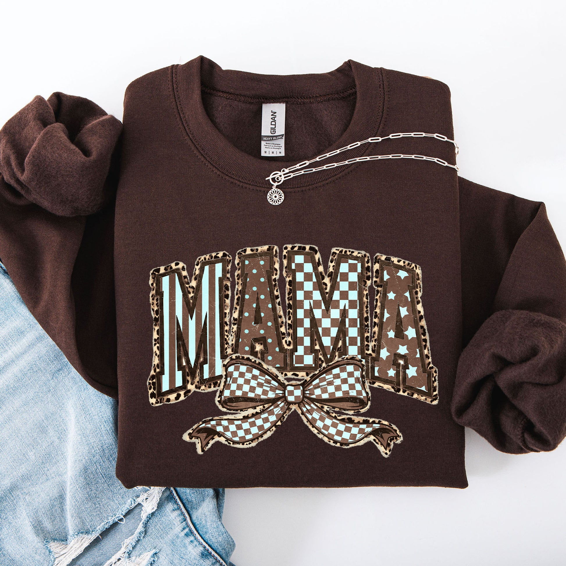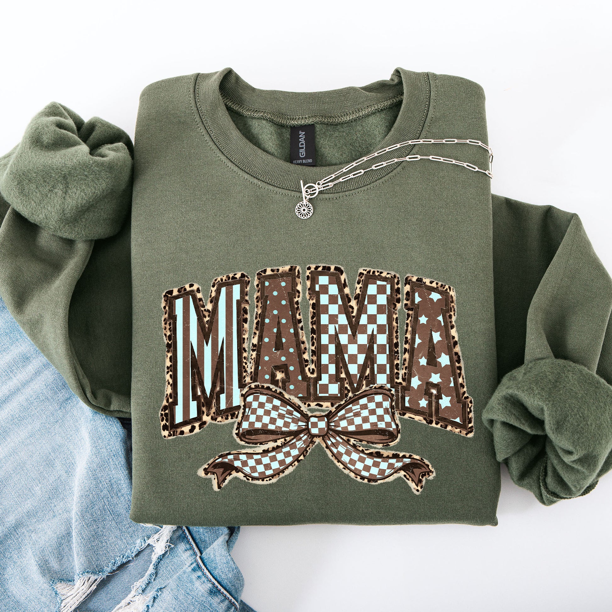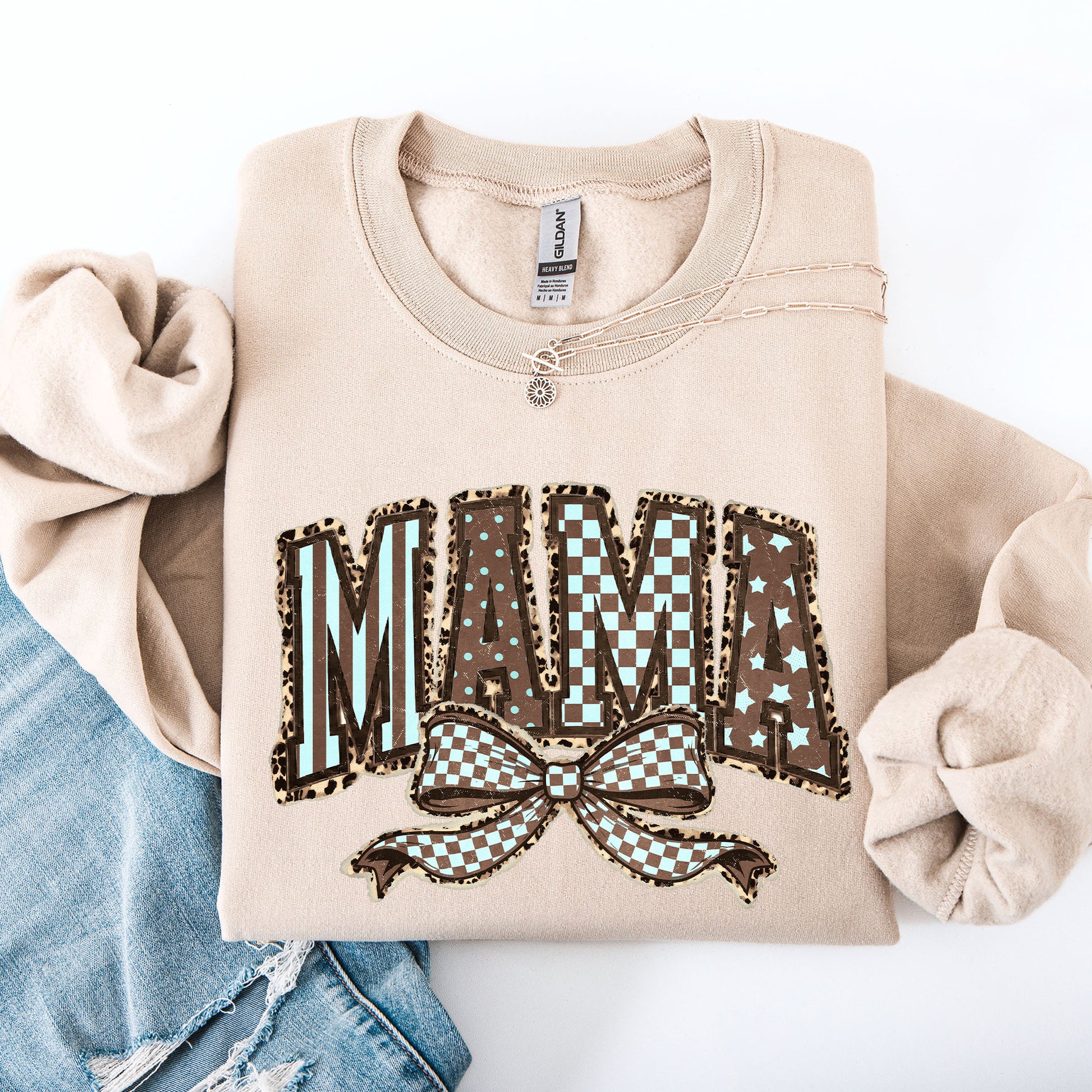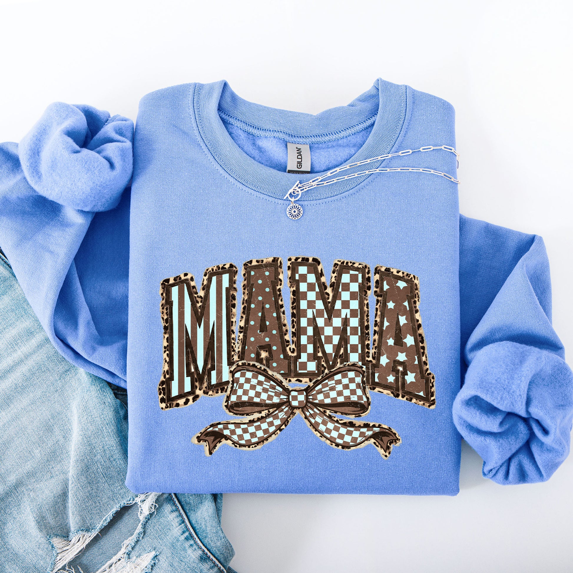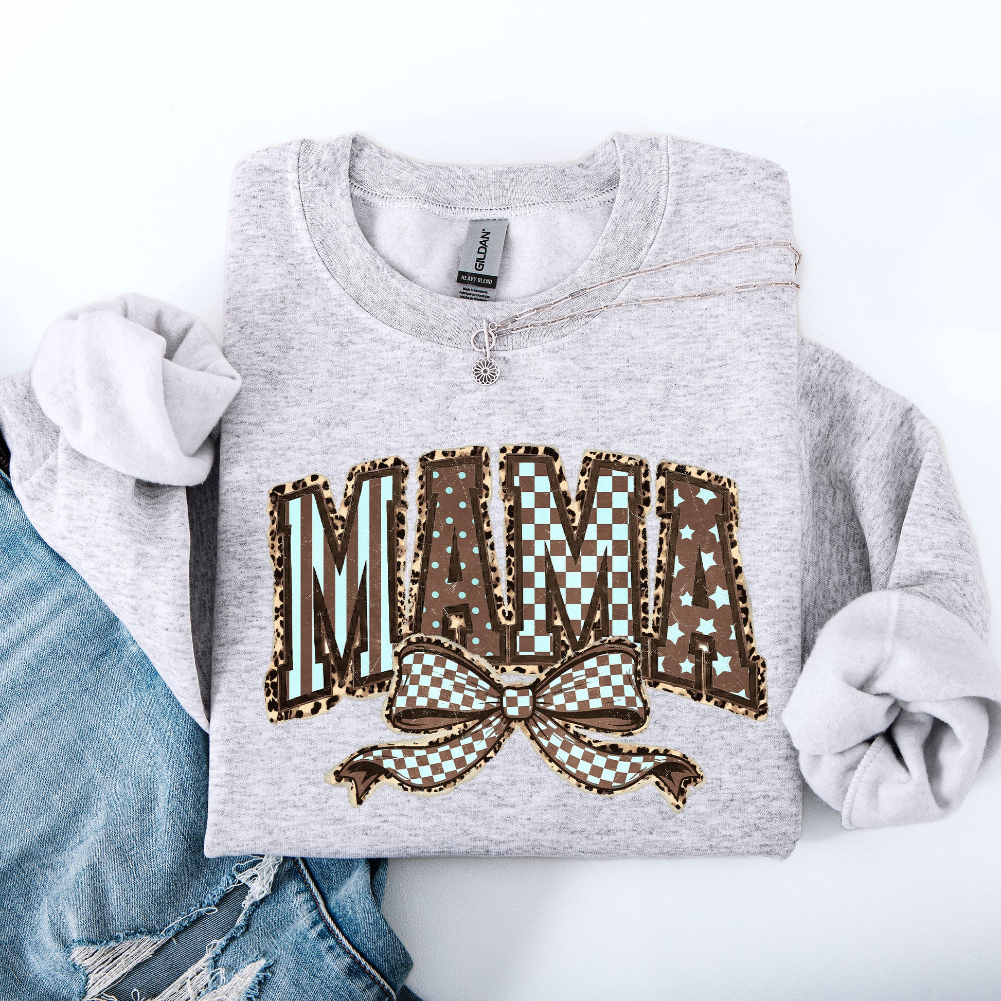 Retro Mama, Bow, Mother's Day, Checkered, Star Sweatshirt