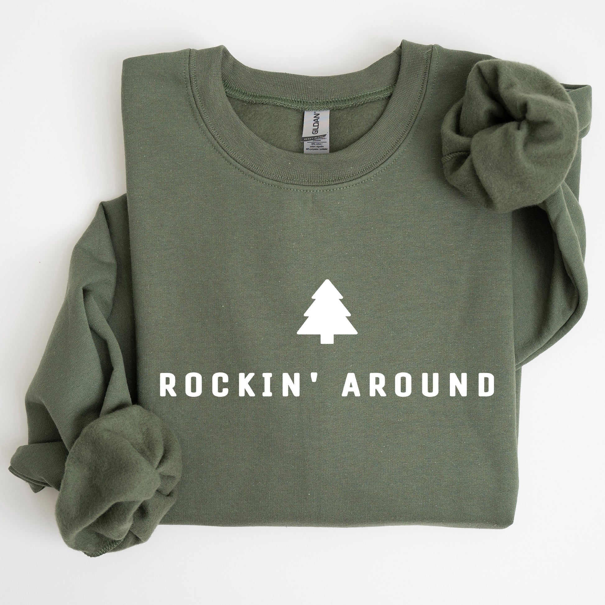 Rockin Around, Minimalist, Christmas, Winter, Santa, Xmas Sweatshirt