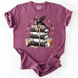 To keep the print bright and the fabric soft, follow these simple steps: machine wash cold with like colors; tumble dry low or line dry. Turn the shirt inside out before washing to extend the life of the graphic. This routine helps maintain color, print clarity, and the familiar feel of pages turning in your favorite reading nook.