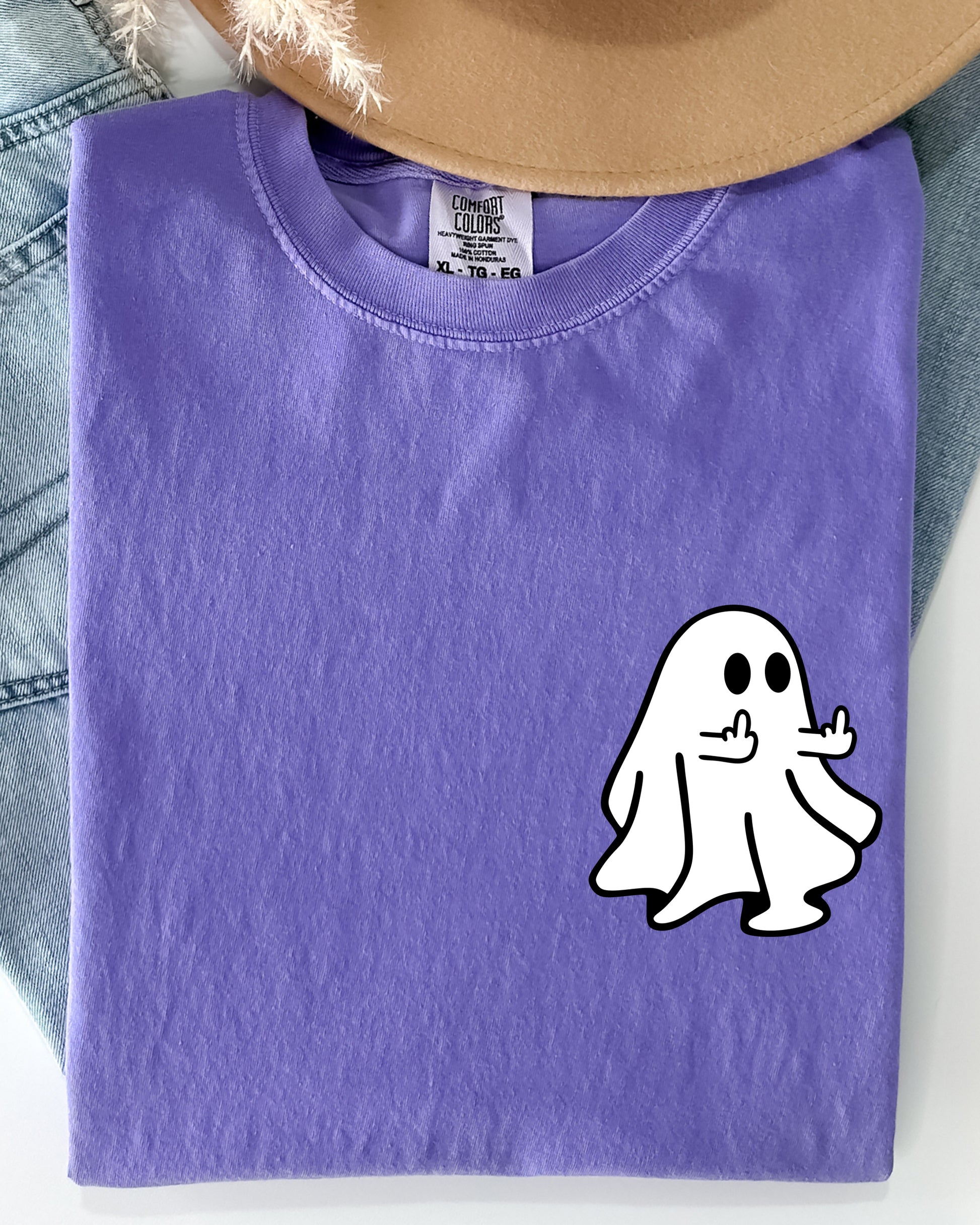 Rude Ghost Pocket Print, Middle Finger, Crude, Vulgar, Funny, Meme, Halloween Shirt Comfort Colors T-Shirt