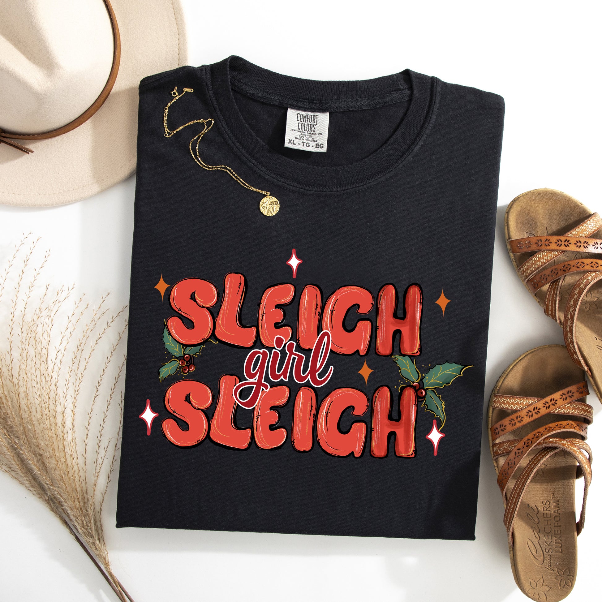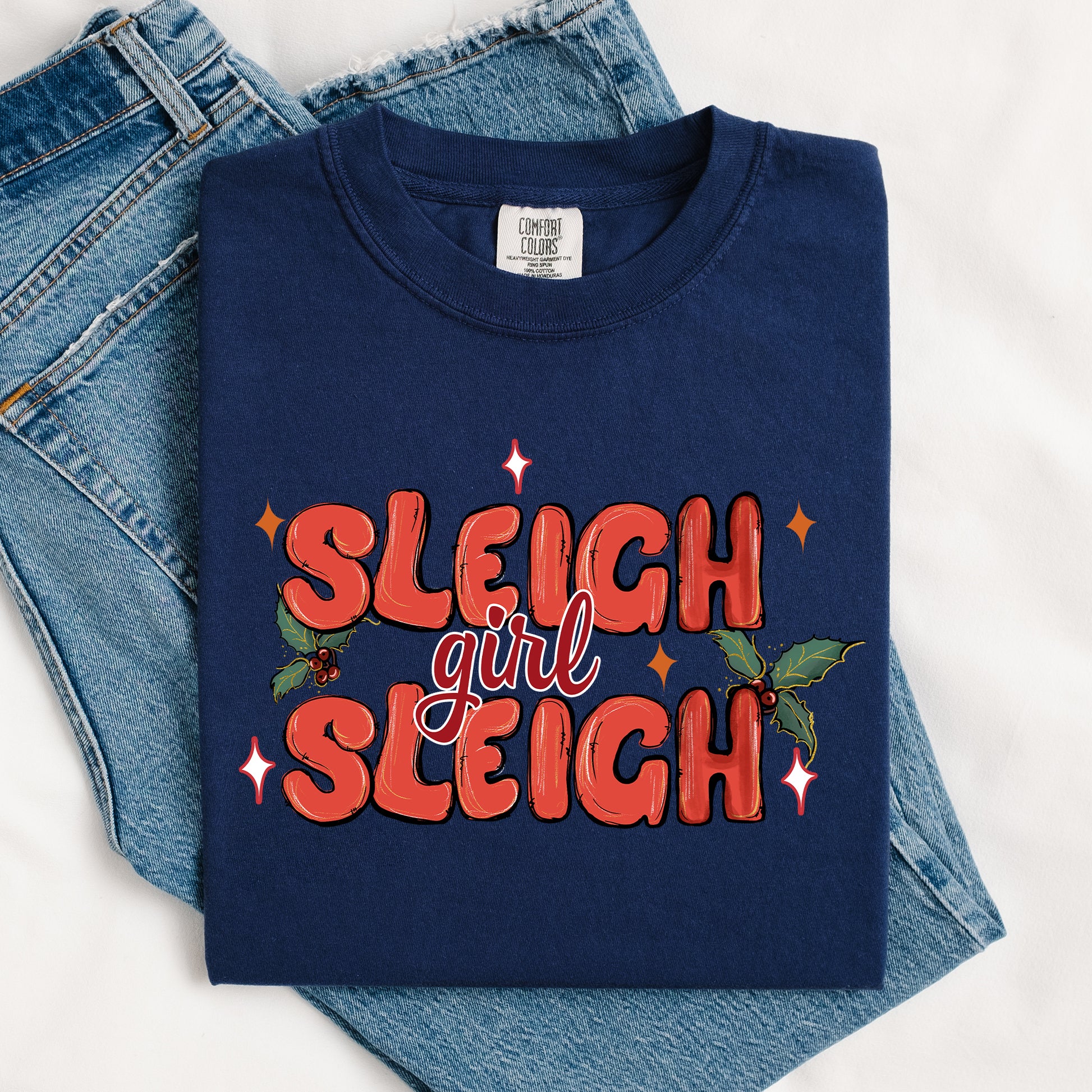 Sleigh Girl Sleigh, Christmas, Holly, Retro, Santa, Xmas Tshirt Comfort Colors T-Shirt