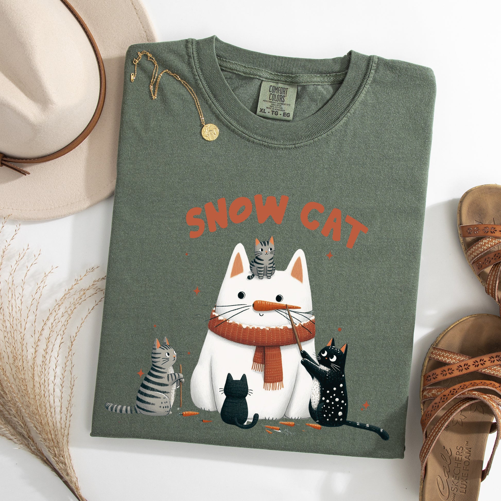 Snow Cat, Snowman, Cats, Christmas, Winter Tshirt Comfort Colors T-Shirt