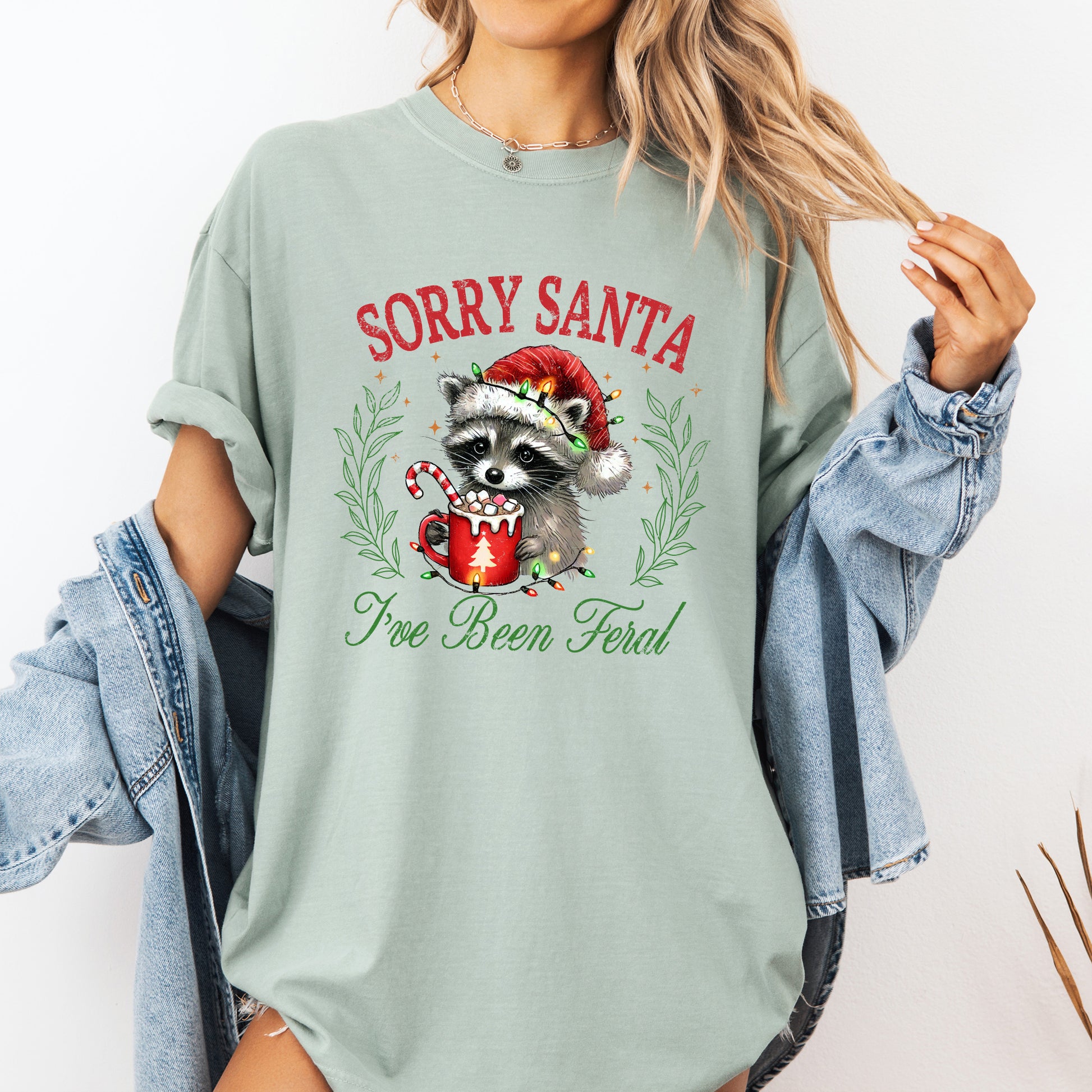 Sorry Santa, I've Been Feral, Raccoon, Hot Chocolate, Christmas, Funny, Cute, Xmas Tshirt Comfort Colors T-Shirt