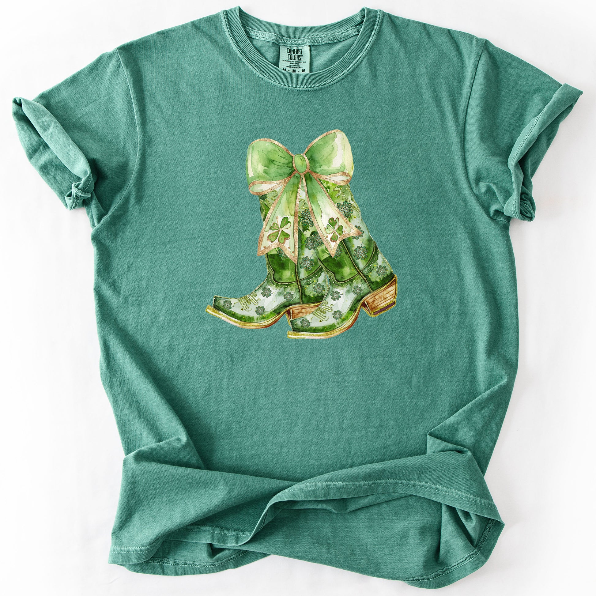 St Patrick's Day Cowboy Boots, Howdy, Shamrock, Lucky, Comfort Colors T-Shirt