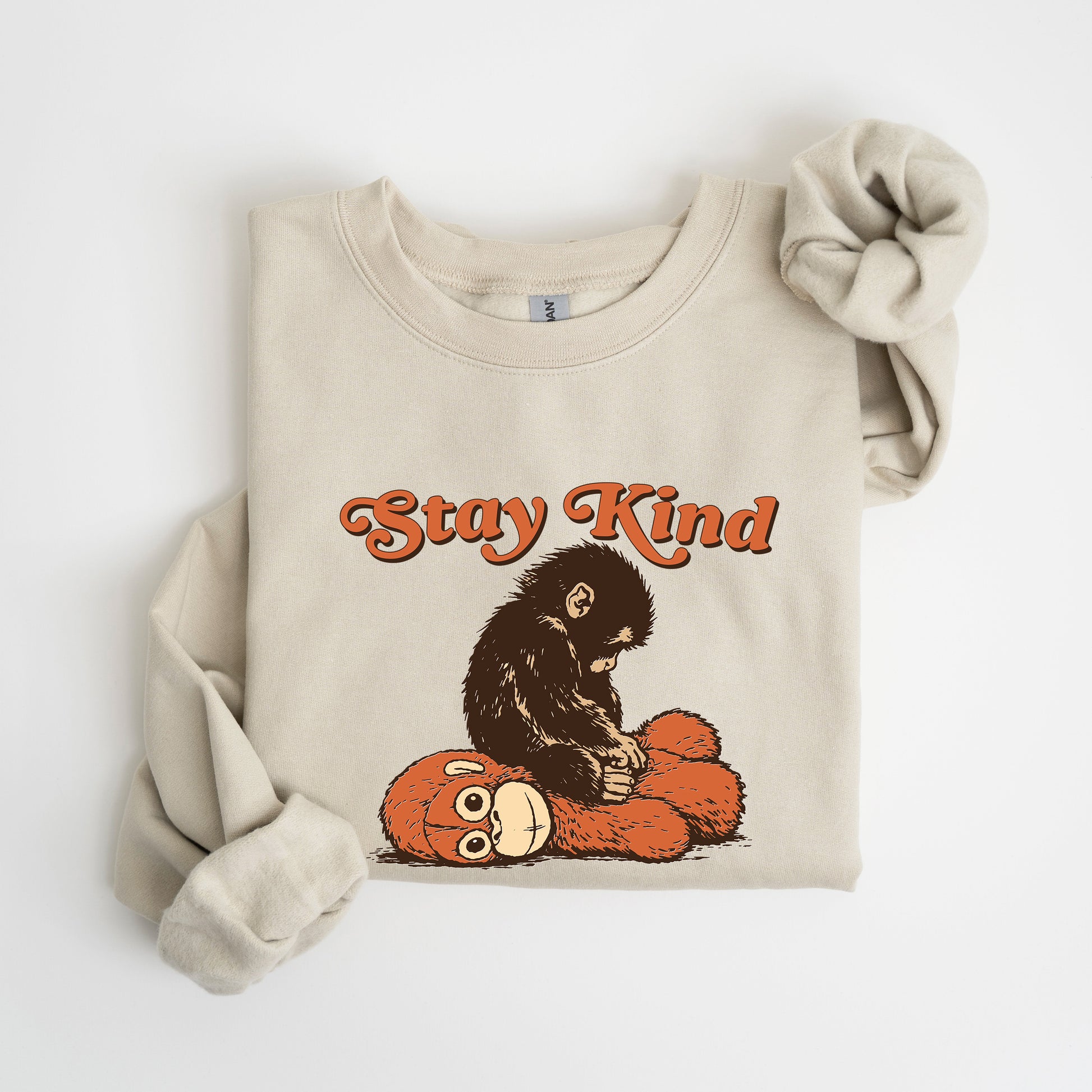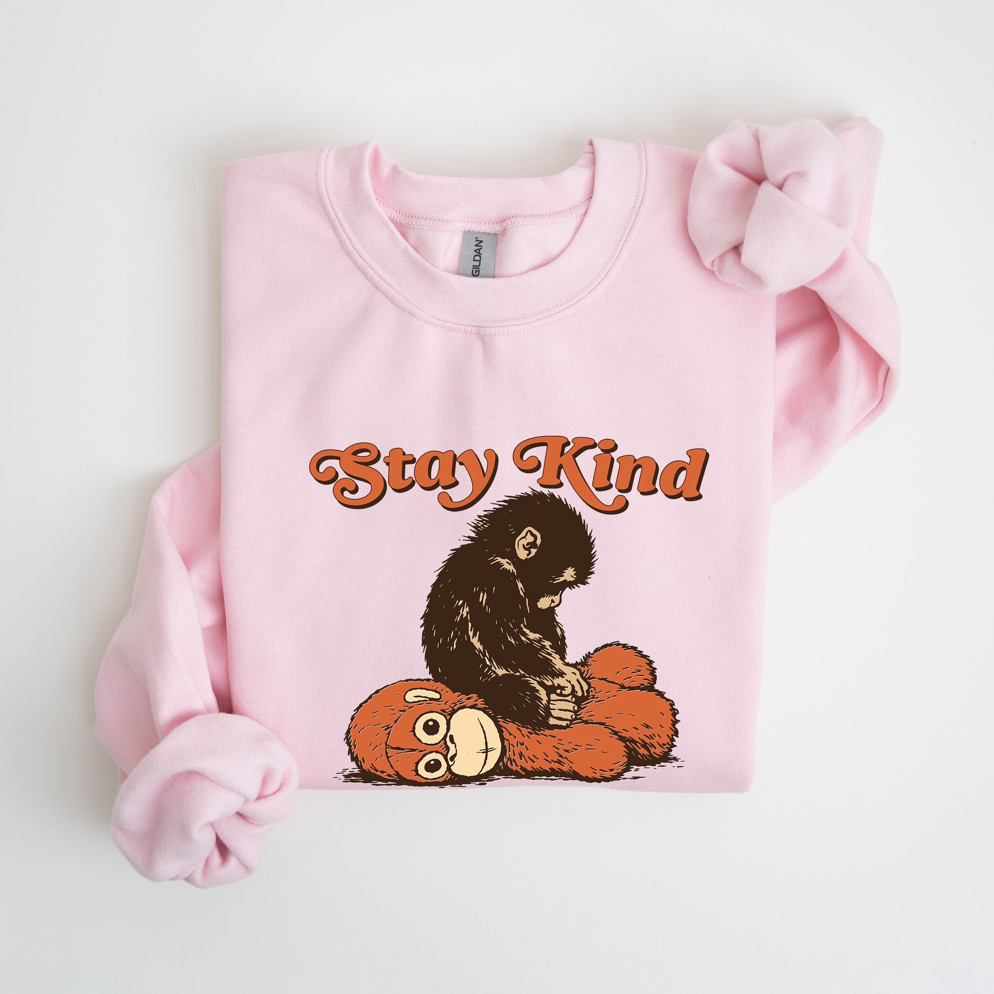Stay Kind Punch the Monkey Sweatshirt turns a viral moment into everyday warmth. Picture Punch dragging his stuffed orangutan bestie—a scene that balances whimsy with heart—and wear it as a reminder that kindness can be bold, funny, and endlessly comforting.