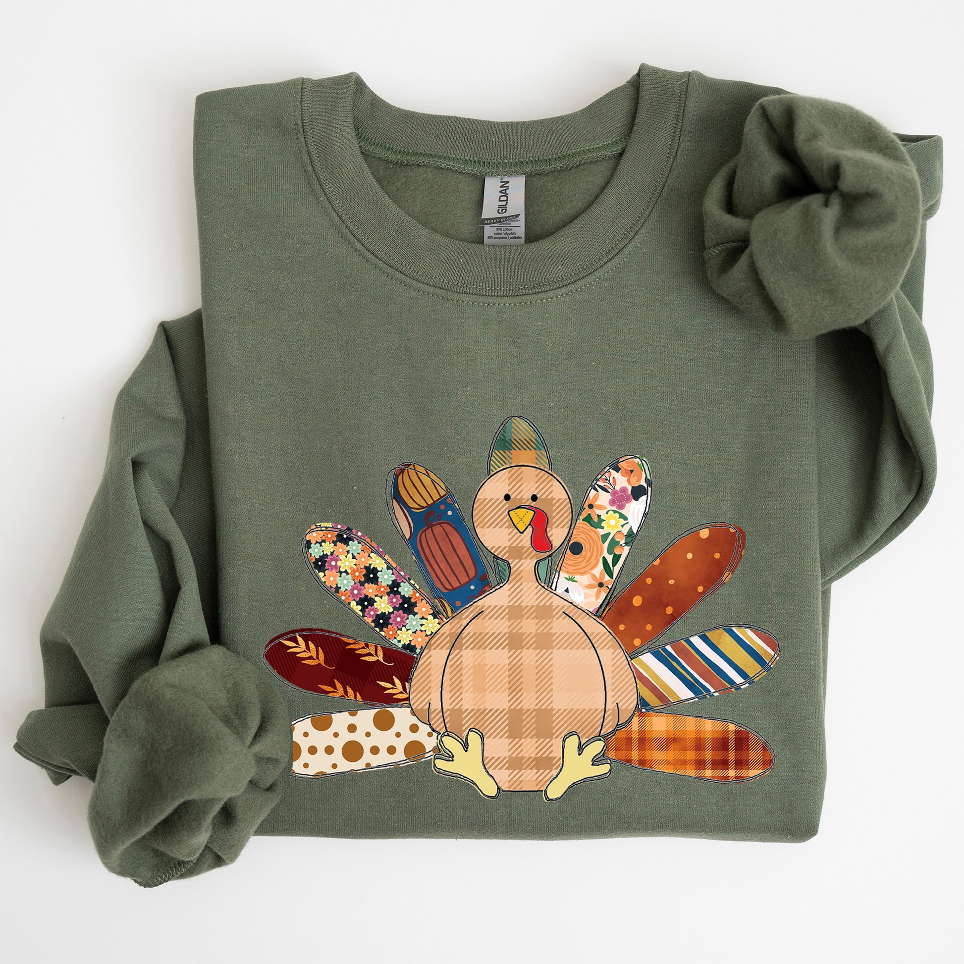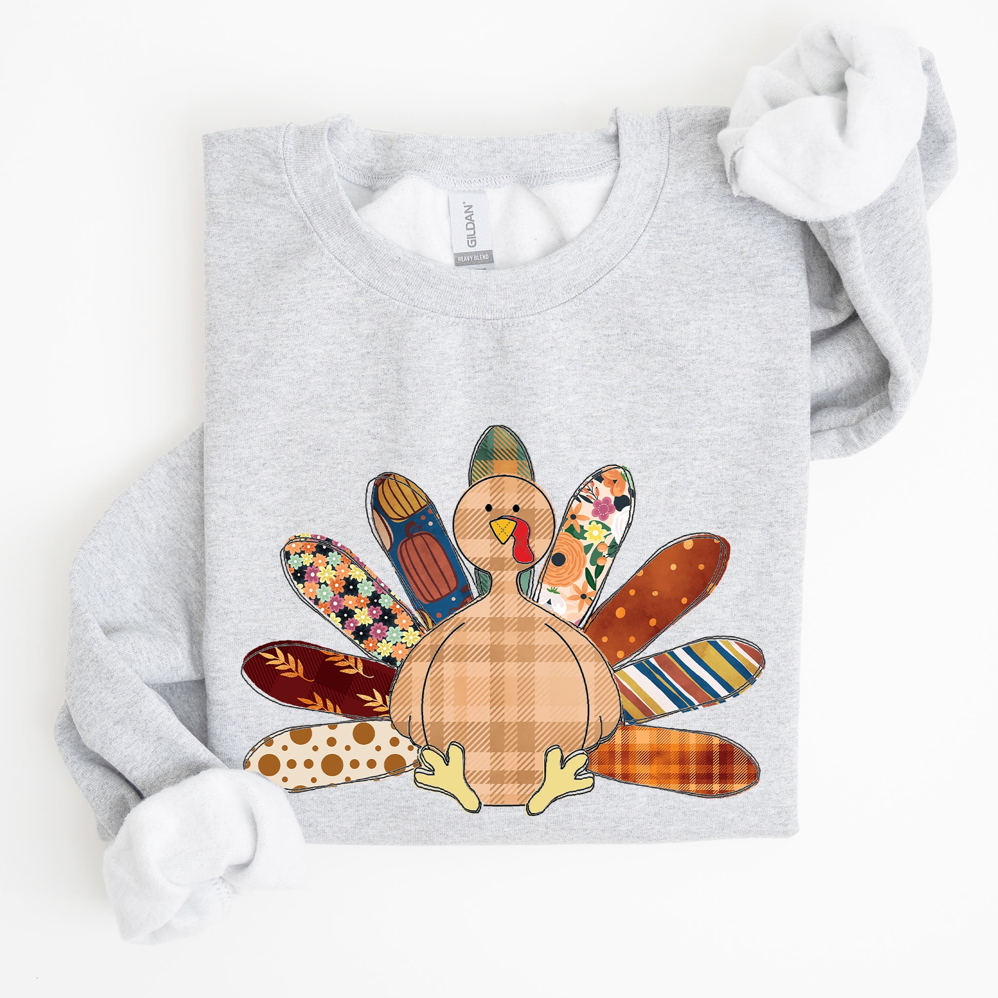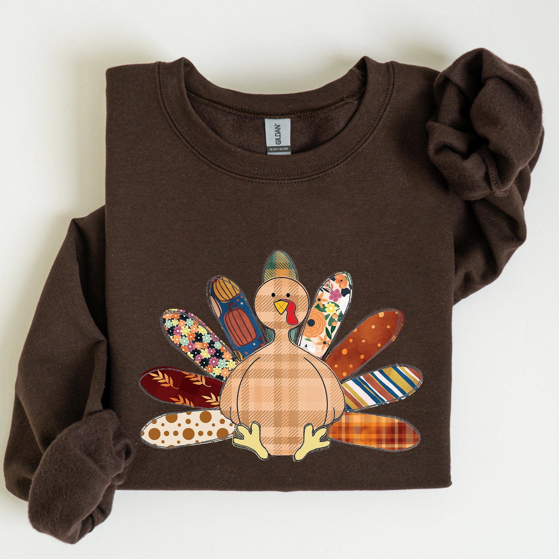 This Thanksgiving Turkey, Plaid, Cute, Autumn, Patterns Sweatshirt pairs effortlessly with your favorite jeans for a relaxed yet trendy outfit. Layer it over shirts for added flair, making it ideal for both casual outings and festive family gatherings. Celebrate the season in style with this must-have addition to your autumn wardrobe!