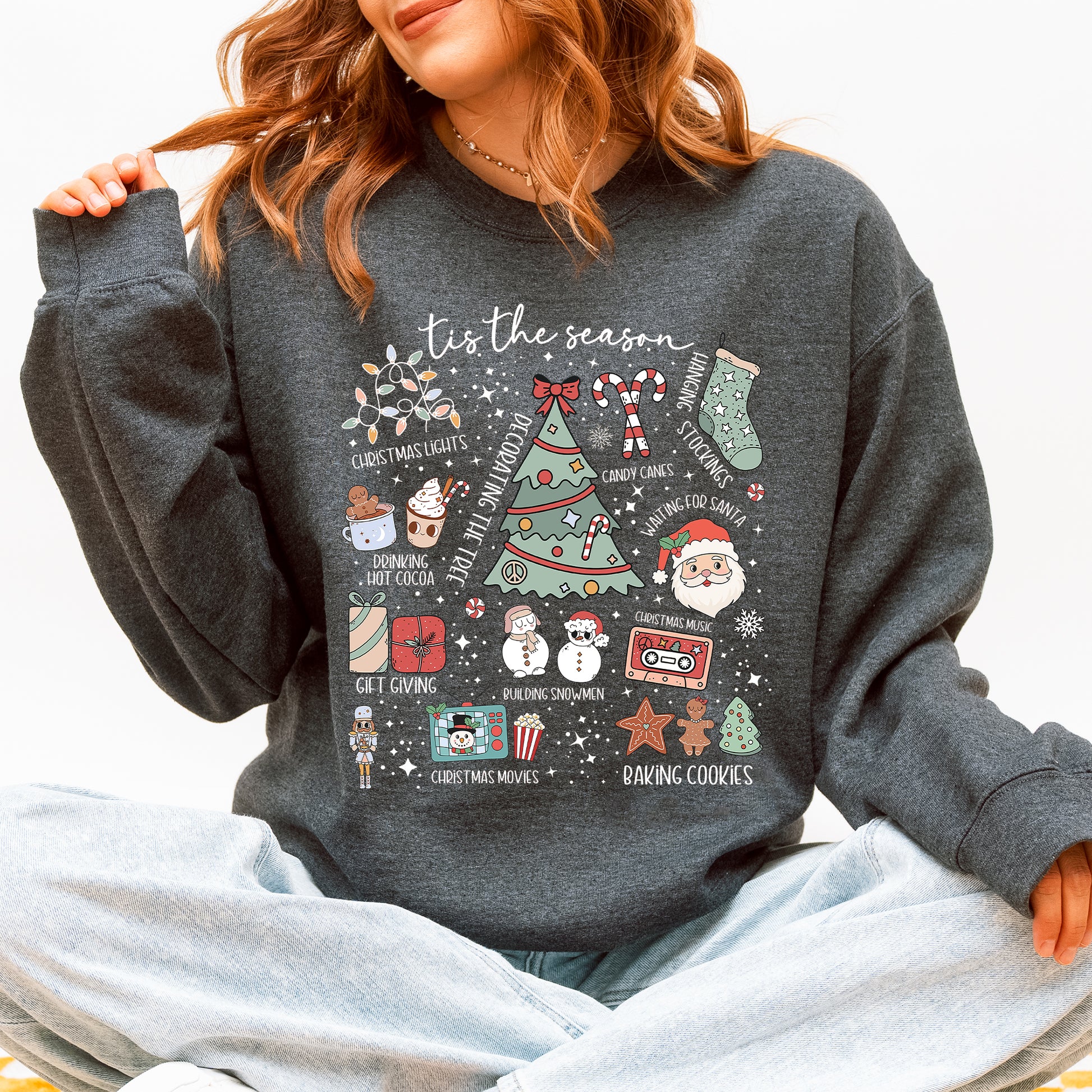 Tis The Season, Christmas, Cute, Trendy, Santa, Tree, Snowman, Cookies, Gifts Sweatshirt