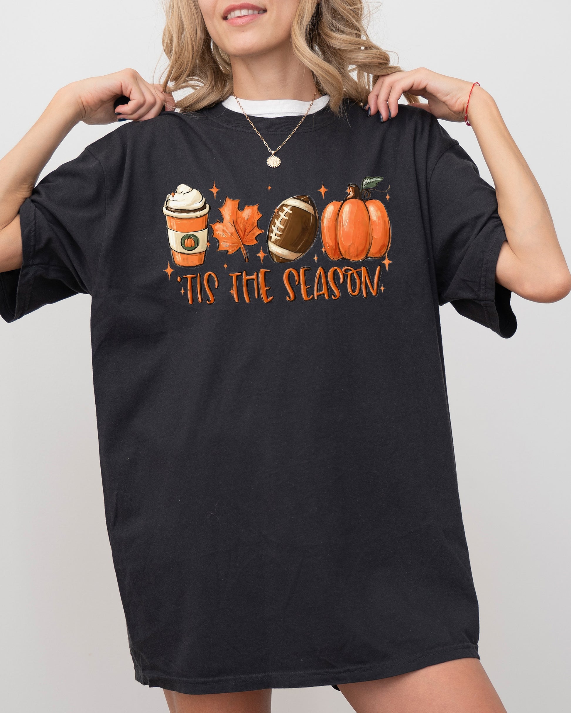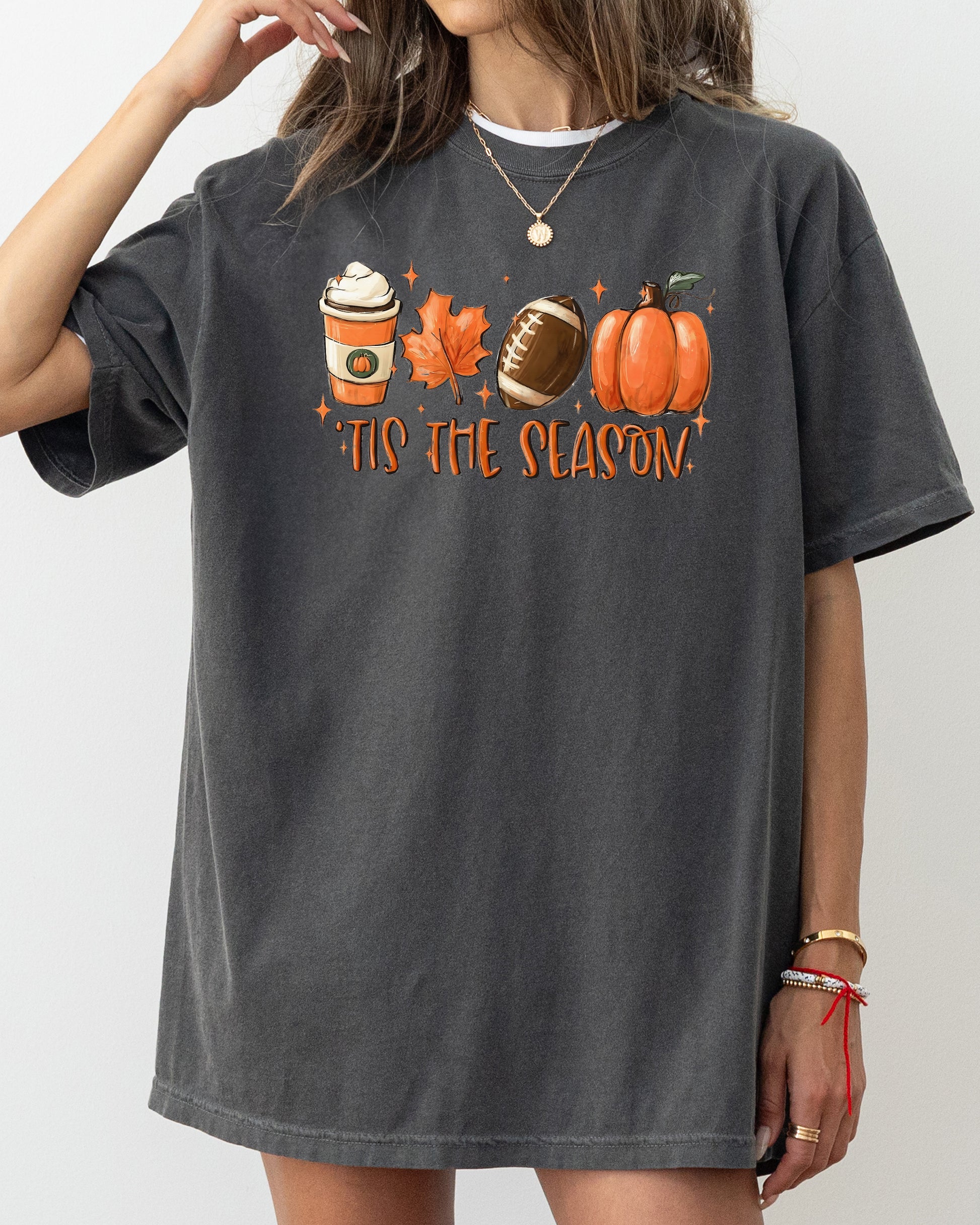 Tis The Season, Pumpkin Spice Latte, Football, Leaves, Coffee, Autumn, Fall Shirt Comfort Colors T-Shirt