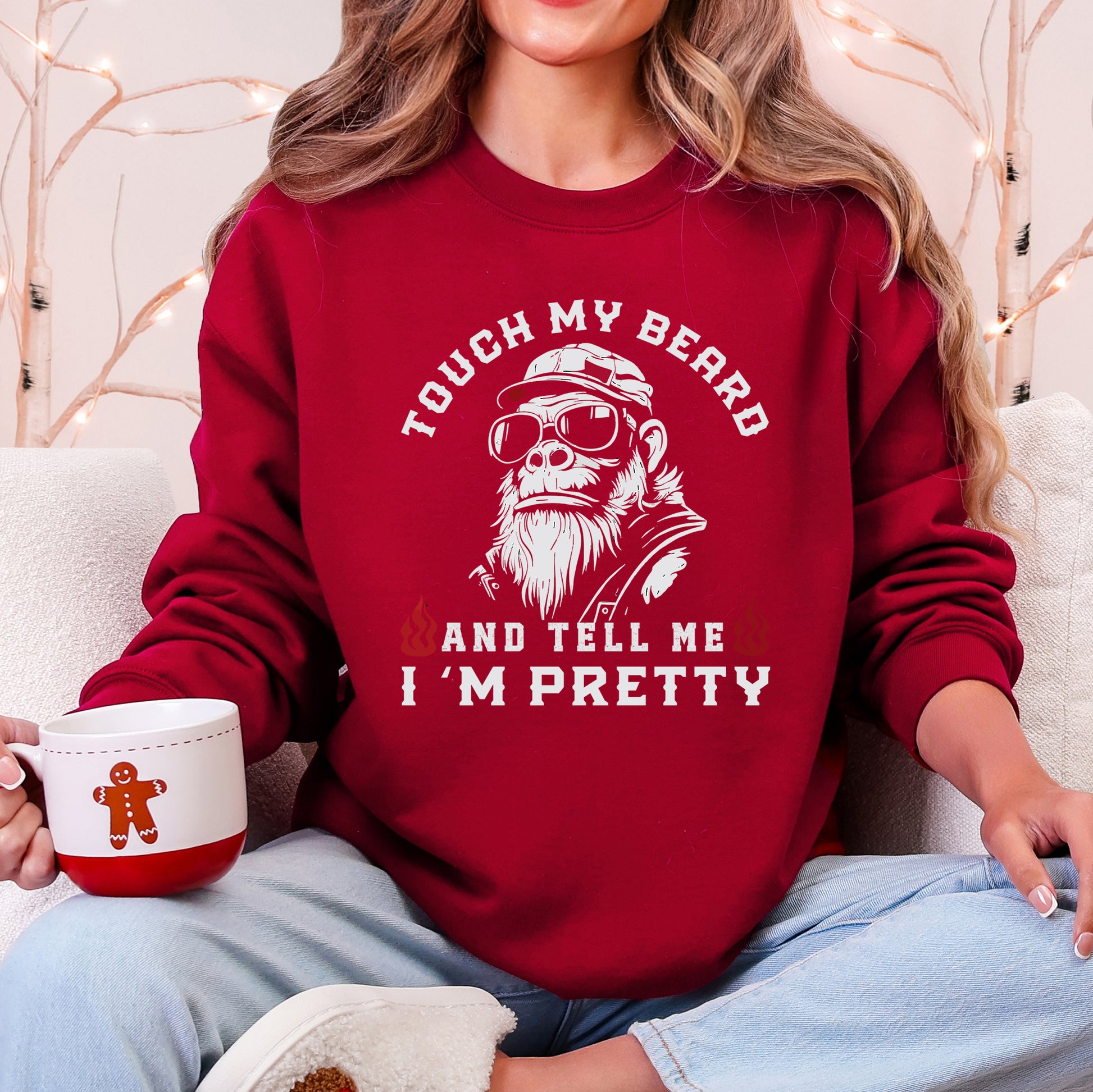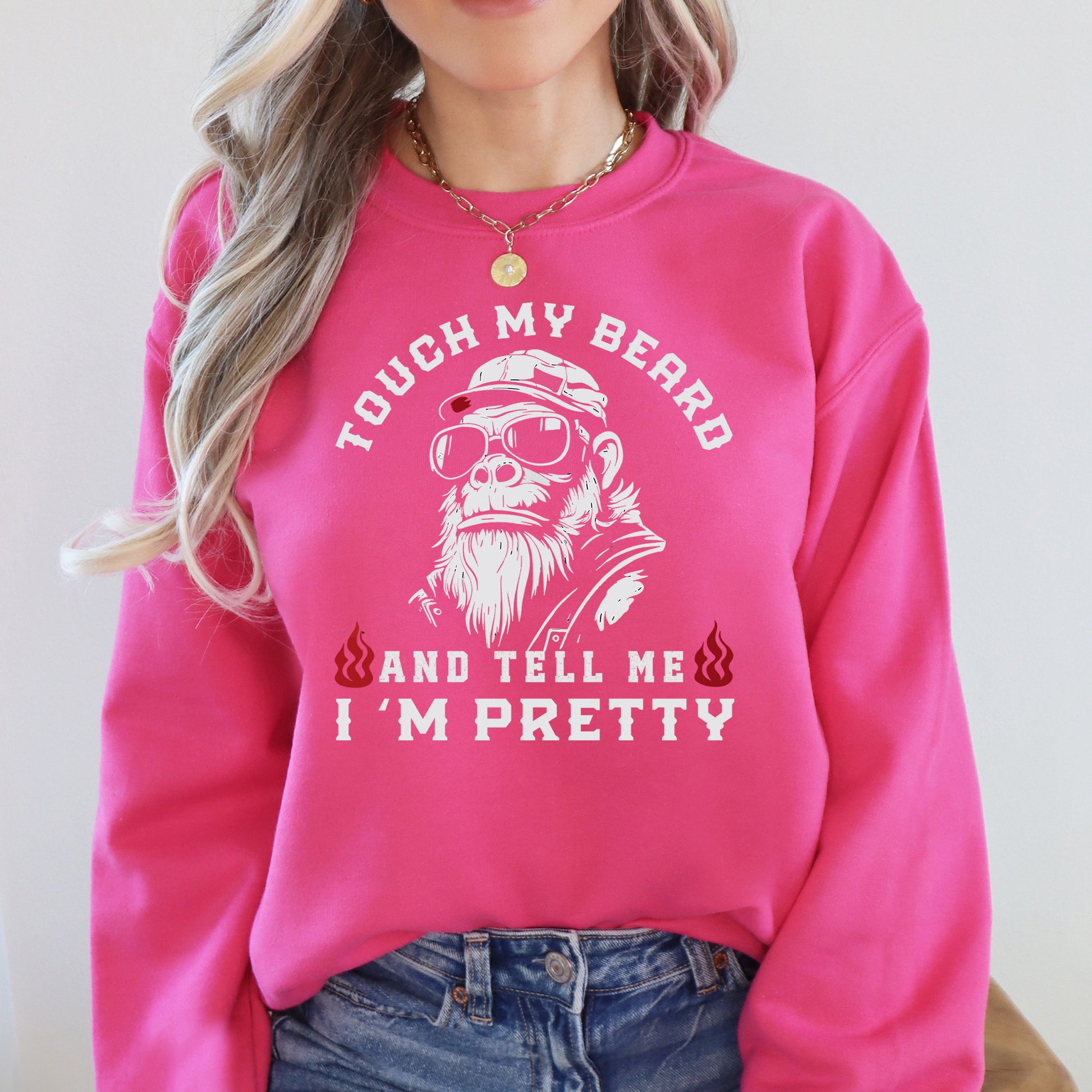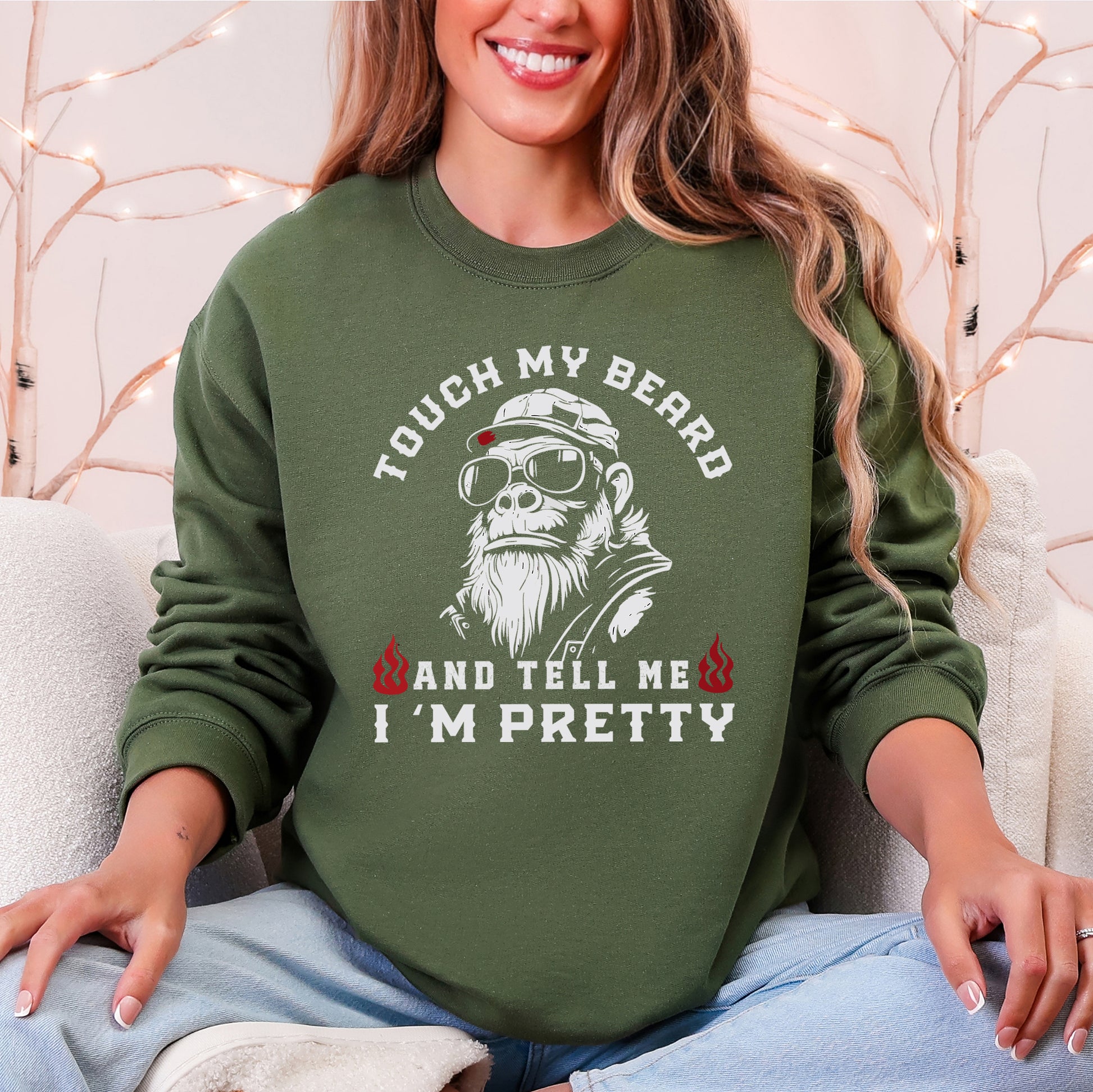 Touch My Beard And Tell Me I'm Pretty, Big Foot, Sasquatch, Funny Sweatshirt