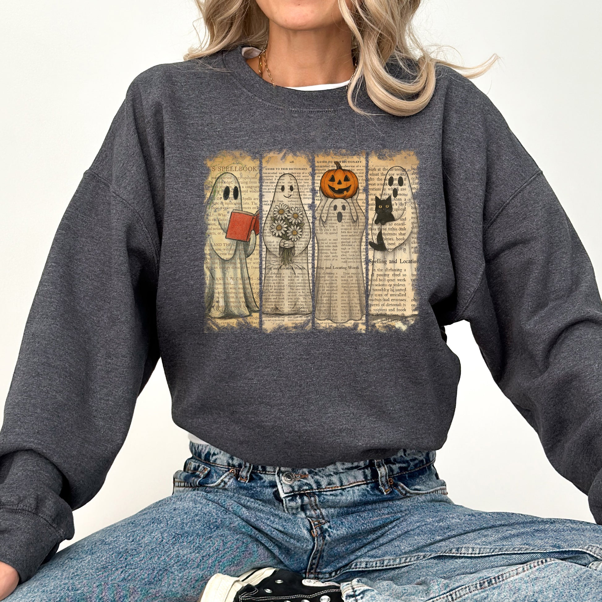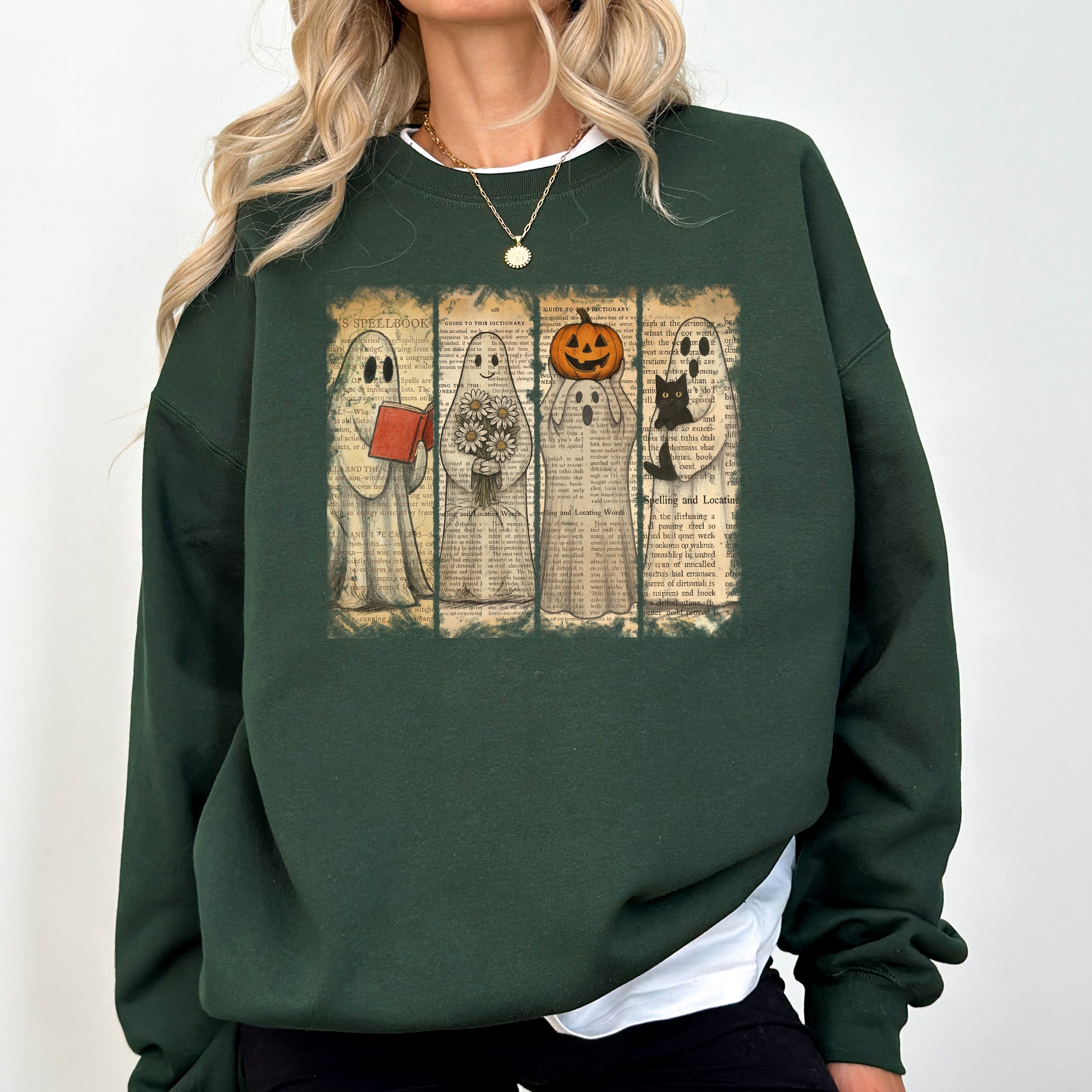 Vintage Newspaper Ghost, Halloween, Book, Cat, Western, Pumpkin, Retro, Spooky, Costume, Fall, Graphic Sweatshirt