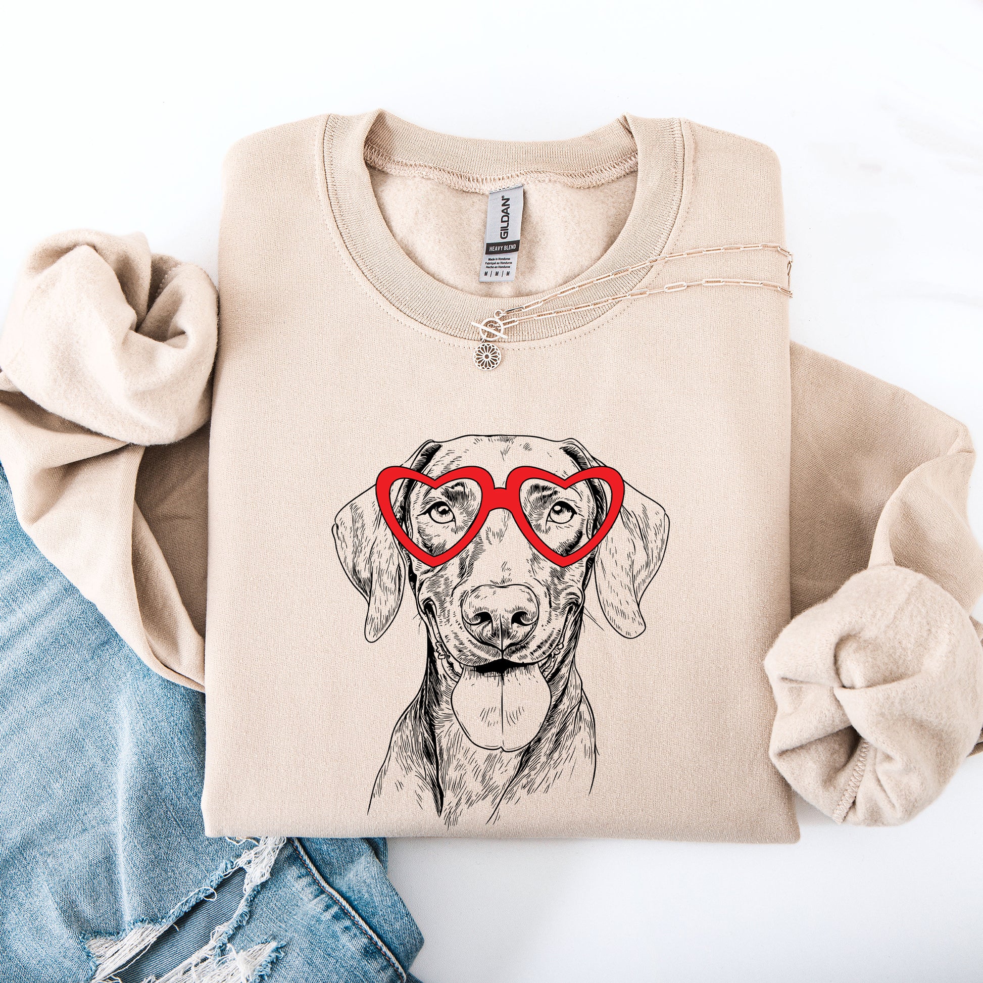 This versatile Valentine's Sweatshirt pairs beautifully with your favorite jeans for a relaxed look or can be layered over shirts for added style. It's ideal for casual outings with your Vizsla or cozy nights in celebrating the love you share.