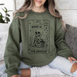 What If, The Anxious, Skeleton, Funny, Tarot Card, Ghost, Halloween, Western, Vintage, Pumpkin, Retro, Spooky, Costume, Fall, Graphic Sweatshirt