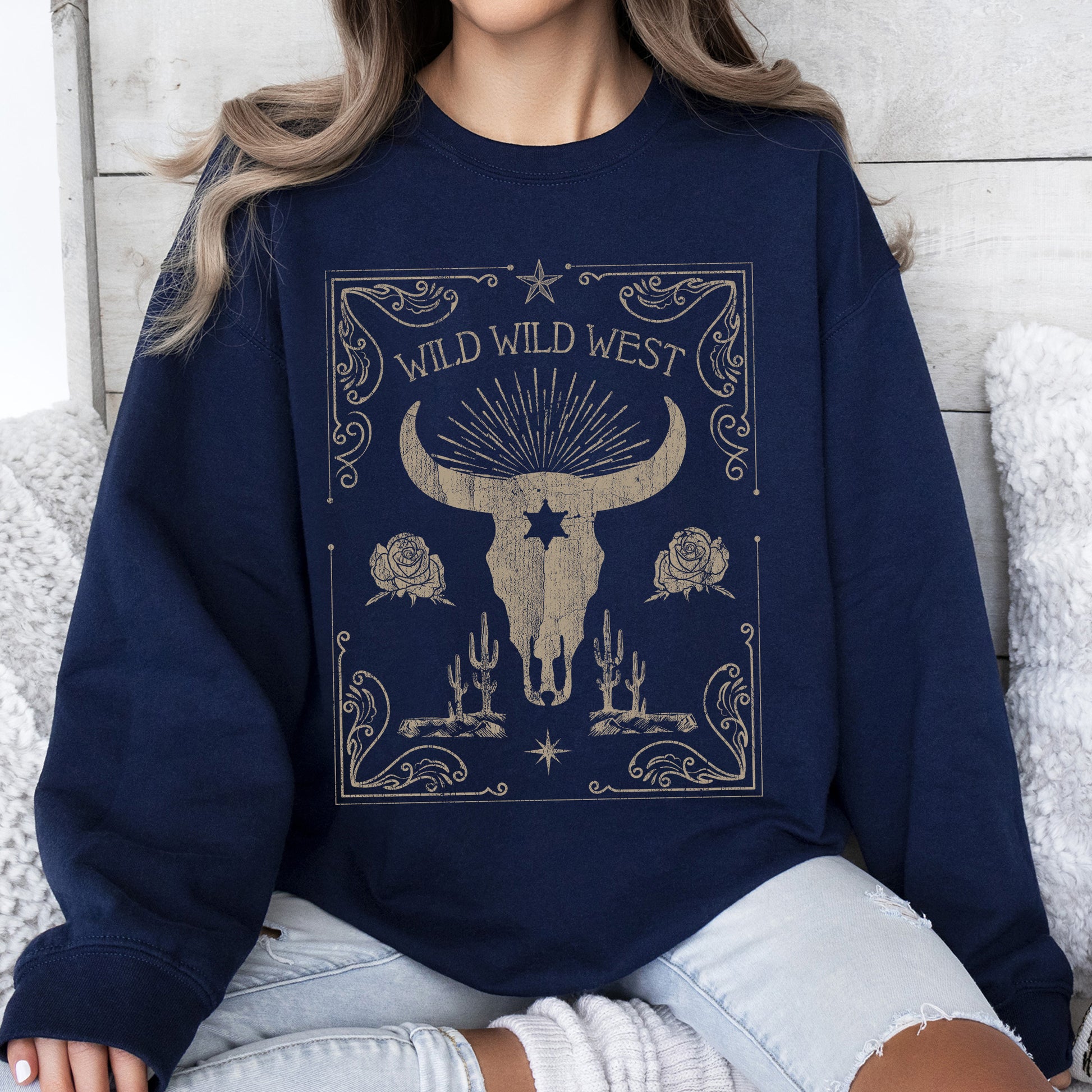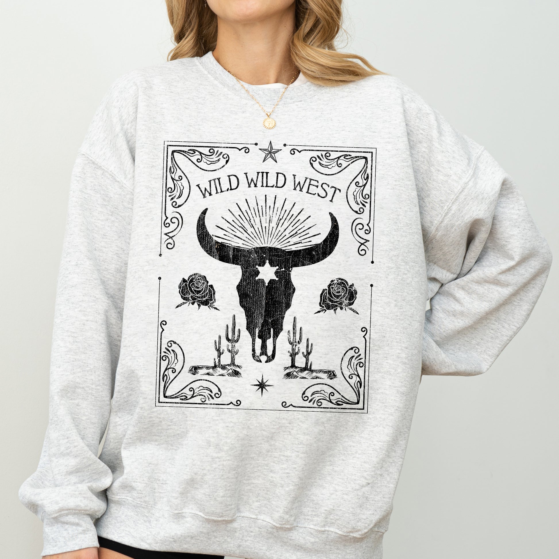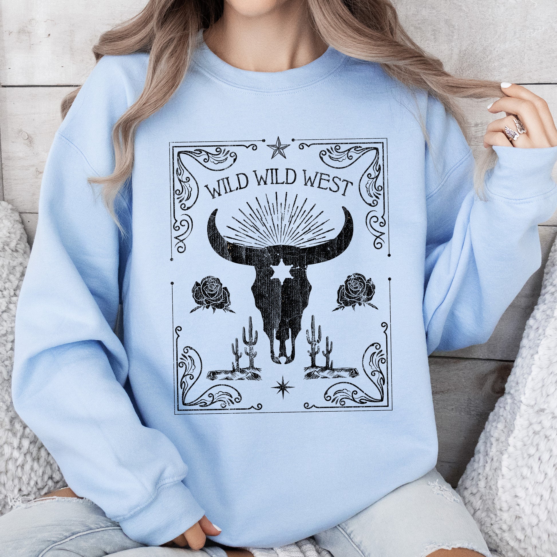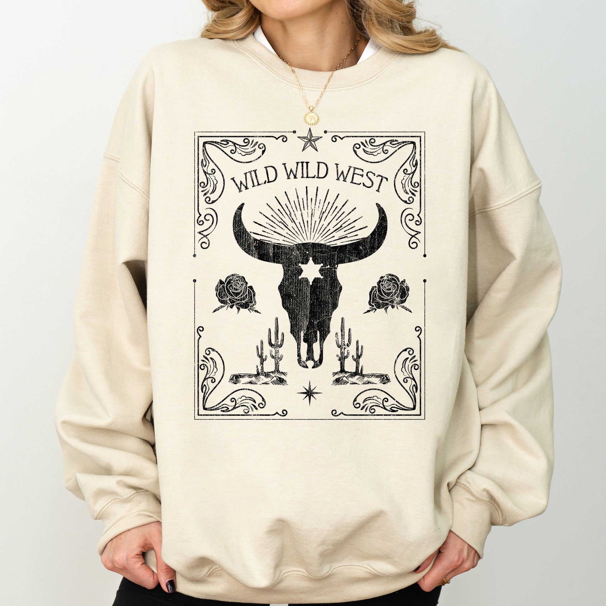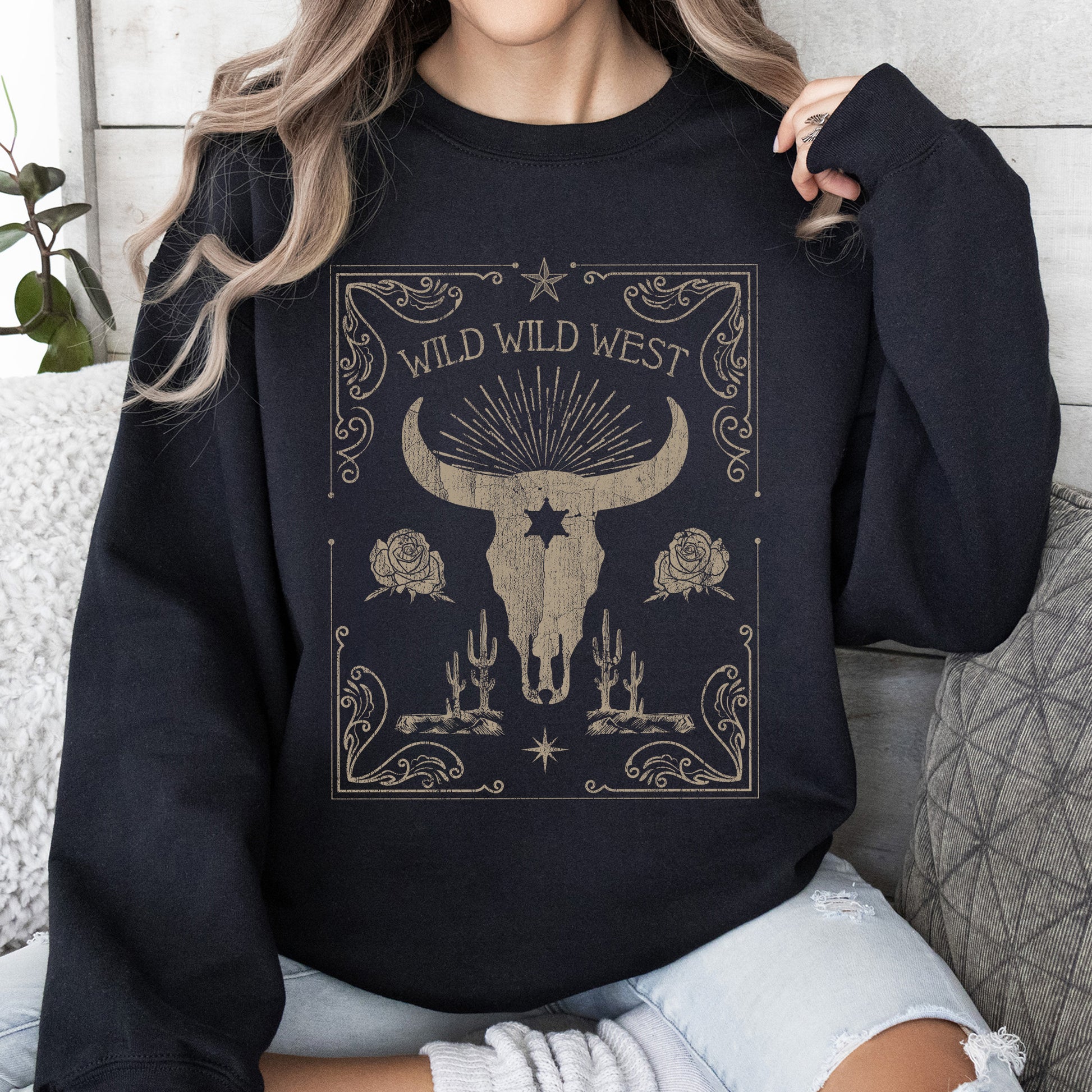 Wild Wild West, Skull, Cattle, Cowboy, Cowgirl, Sweatshirt