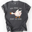 Ready to wear a tee that’s equal parts humor and comfort—and ready to spark a smile wherever you go? The You Make My Heart Go Honk, Silly Goose tee is your go-to Valentine’s Day staple that proves fashion can be funny, friendly, and seriously comfortable all at once.